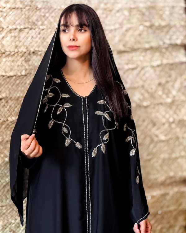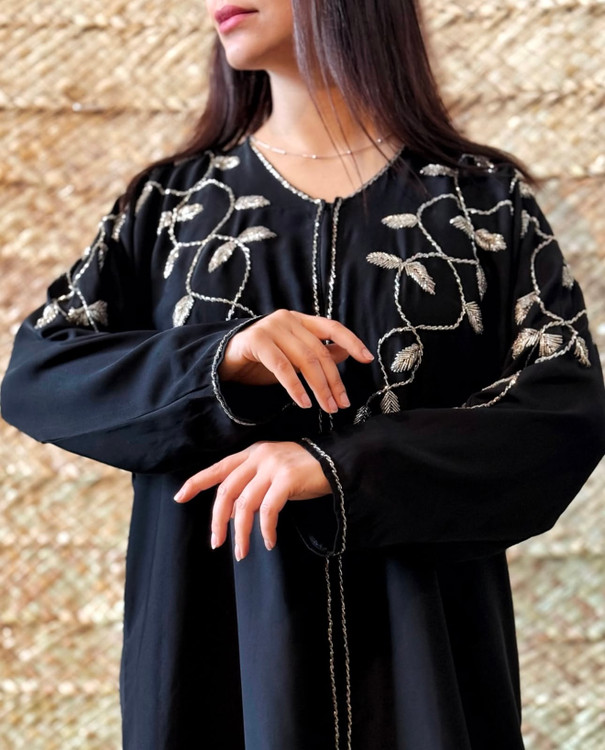 عبا مدل شکوفه با جواهردوزی نقره ای یه کار شیک برای مجالس و روزمره و رنگ مشکی جواهر دوزی با توجه به سلیقه شما انجام میشود با پارچه ندا کره و جلو کار دکمه عیبی خورده زمان آماده سازی ۱۴روز